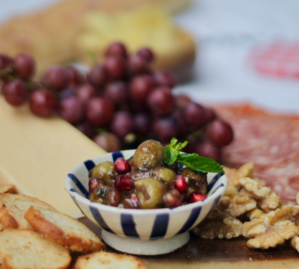 Our decadent blend of green olives, walnuts and pomegranate.